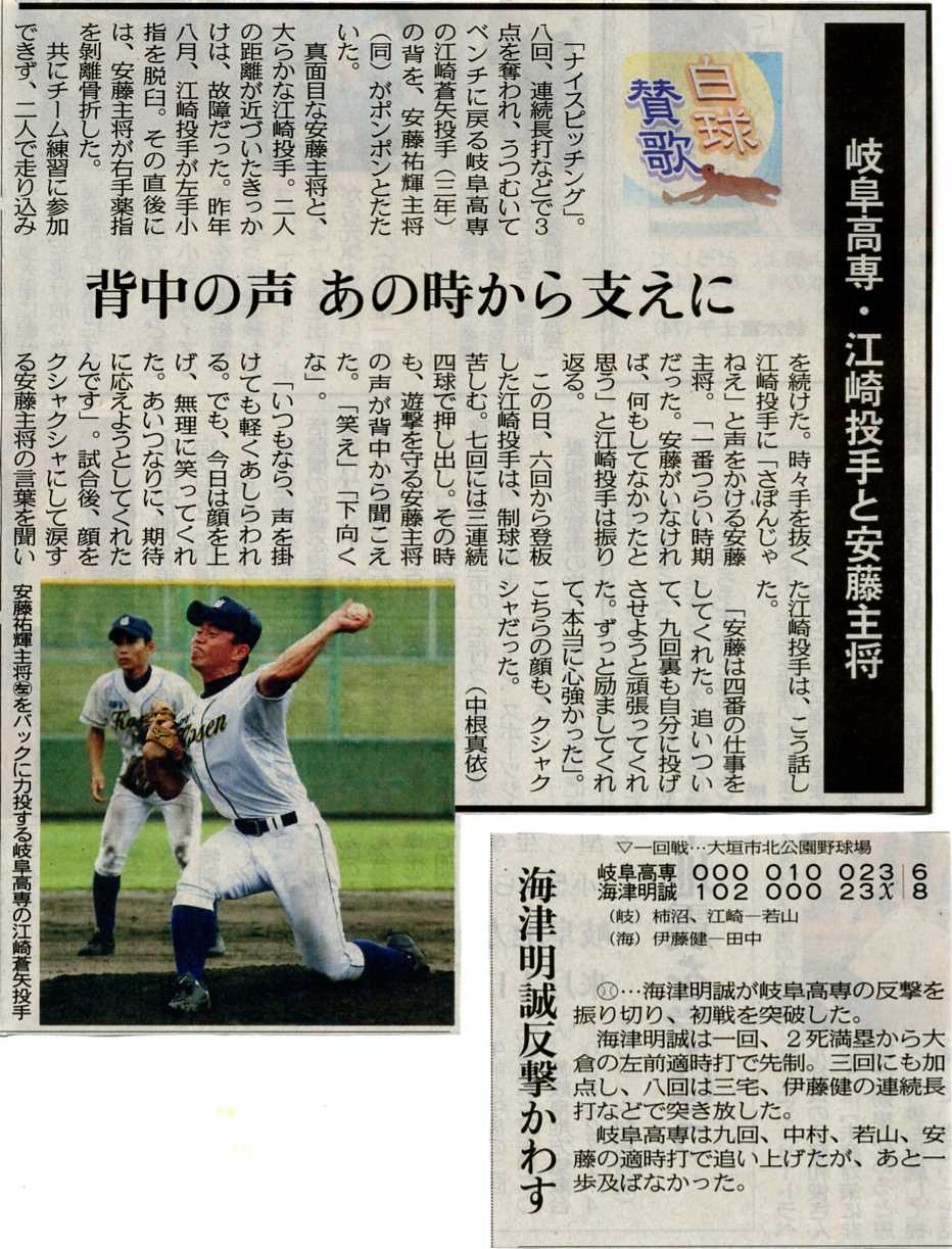 第97回全国高校野球選手権岐阜大会に出場した在校生たちの記事が2015年7月5日の中日新聞に掲載されていましたので、紹介します。